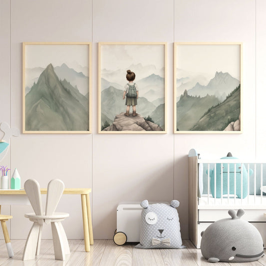 Girl Explorer Wall Art – Adventure Nursery Print • Set of 3