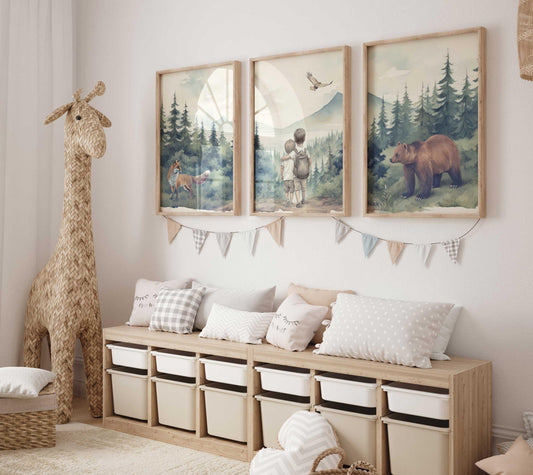 Bear & Fox Print – Woodland Boys Room Wall Art • Set of 3