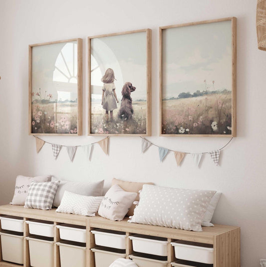 Coordinated wall art sets are an easy way to style children’s rooms. Our Set of 3 Nursery Prints collection provides ready-to-hang trios that simplify decorating while giving nurseries, bedrooms, and playrooms a cohesive and practical design.