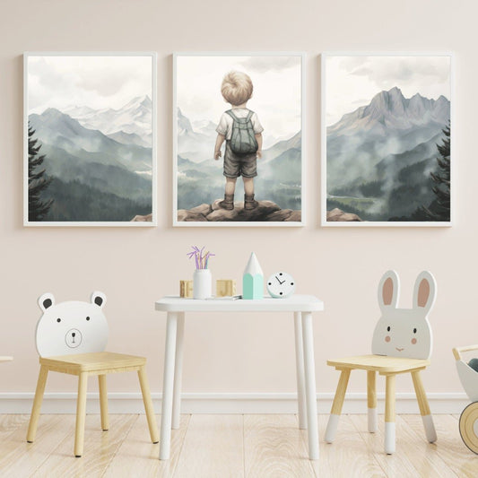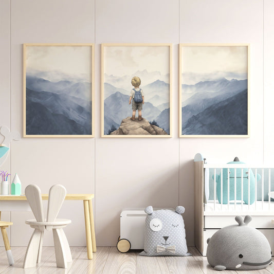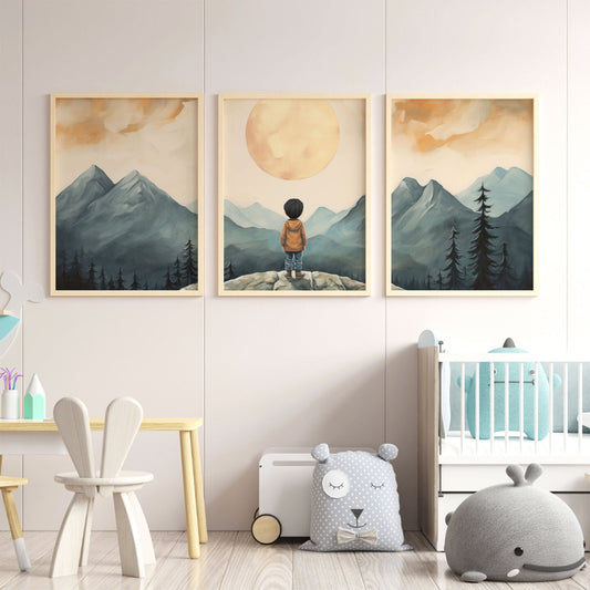 Adventure Mountain Wall Art – Boys Room Print • Set of 3