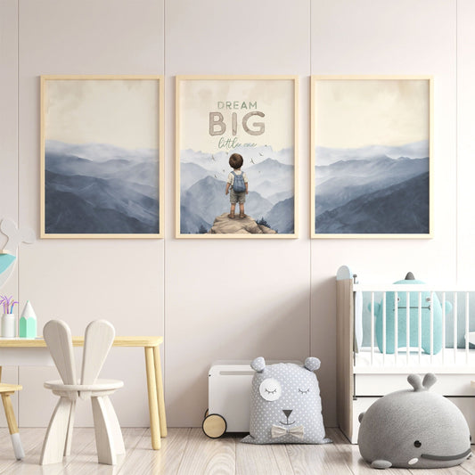 Dream Big Little One Wall Art – Adventure Nursery Print for Girls • Set of 3