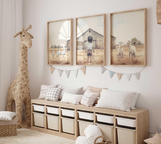Farm Animal Wall Art – Countryside Boys Room Print • Set of 3