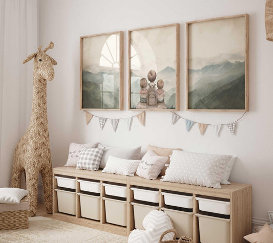 For babies and toddlers, gentle images of siblings playing or holding hands create a calming backdrop. As children grow, more dynamic prints—such as brothers and sisters exploring outdoors—continue to feel relevant. Choosing flexible sibling artwork now means it can stay on the walls for years without needing to be replaced.