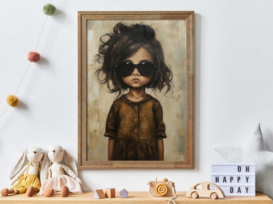Little Girl in Sunglasses Print – Vintage Girls Room Wall Decor