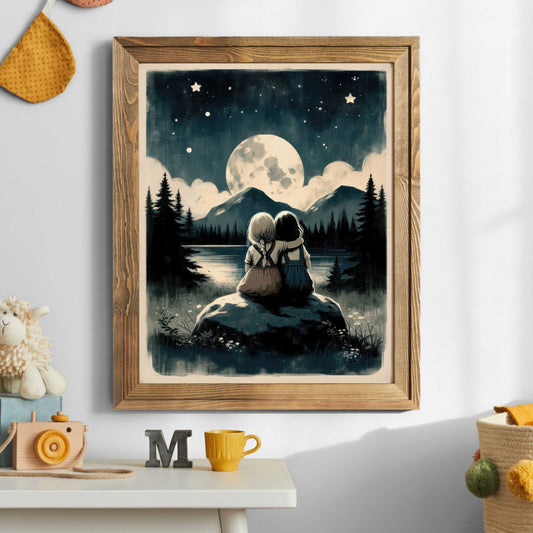 Gentle sister illustrations provide a calming nursery backdrop, while more detailed prints of siblings together remain meaningful as children grow. This flexibility makes sister artwork suitable for nurseries, shared bedrooms, and playrooms throughout different stages of childhood.