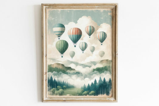 Vintage Hot Air Balloon Wall Art – Skyward Nursery Print