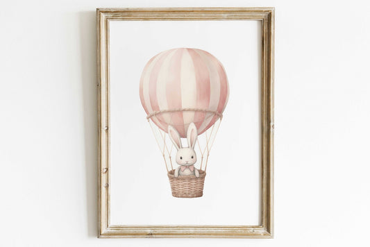 Bunny Hot Air Balloon Wall Art – Animal Boys Nursery Print