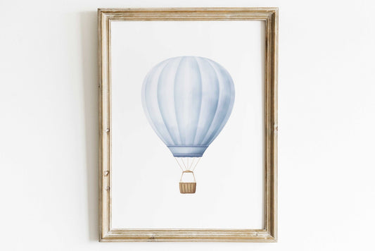 Blue Hot Air Balloon Wall Art – Vintage Boys Room Print