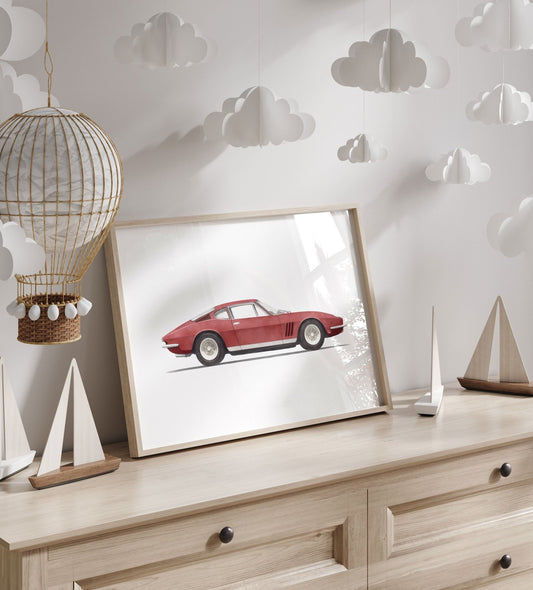 Red Vintage Ferrari Print – Vehicle Boys Room Wall Art