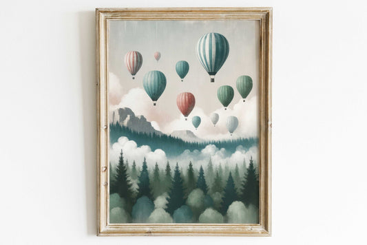 Hot Air Balloons Wall Art – Adventure Kids Room Print