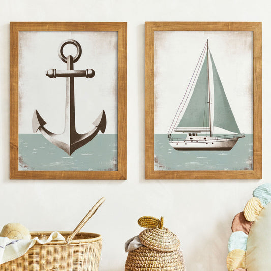 Nautical Anchor & Sailboat Wall Art – Ocean Boys Room Print • Set of 2