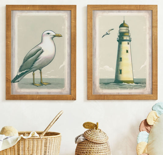 Sailboat and Lighthouse Wall Art – Coastal Girls Room Print • Set of 2