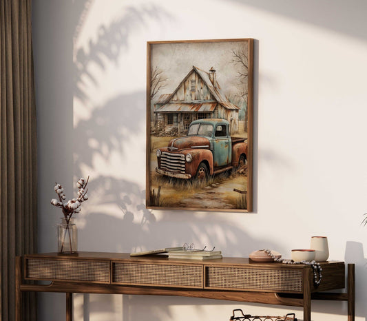 Rusty Car Wall Art – Vintage Living Room Print