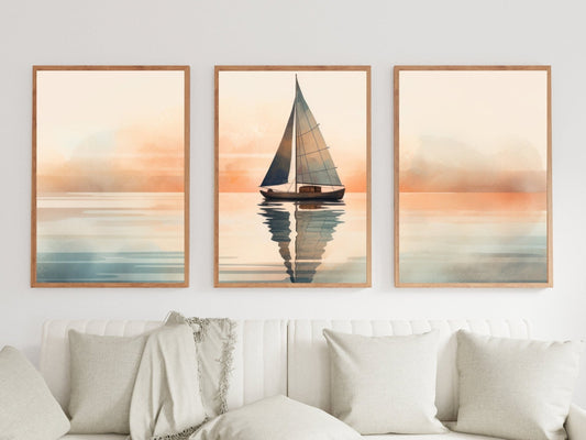Sailboat Wall Art – Nautical Living Room Print • Set of 3