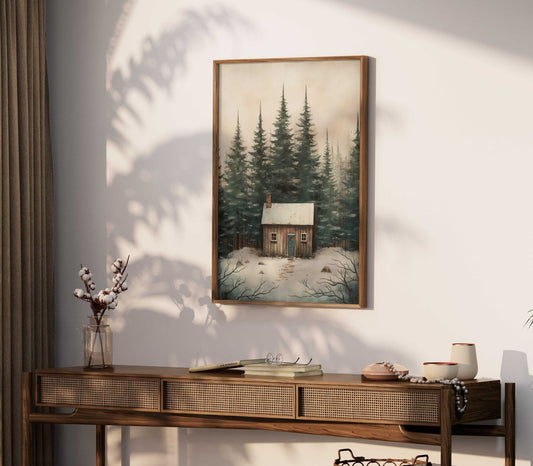 Vintage Forest Cabin Wall Art – Woodland Living Room Decor