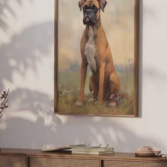 🐾 Embrace the Elegance of Boxers 🐾 Transform your space with the serene beauty of a Boxer dog resting in a meadow, captured in our vintage-inspired wall art.