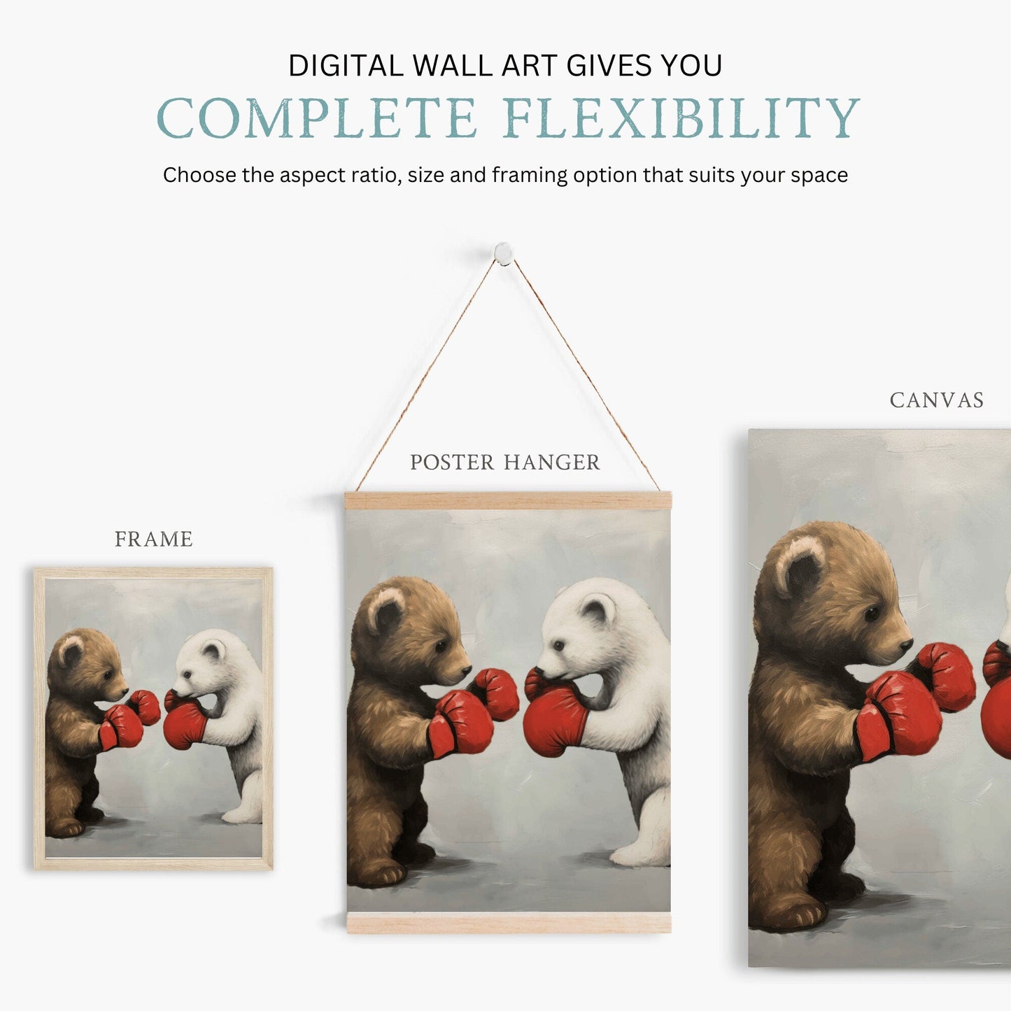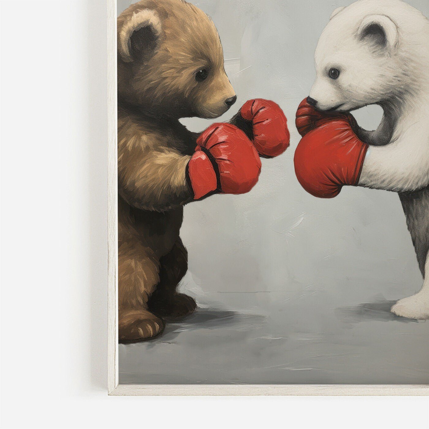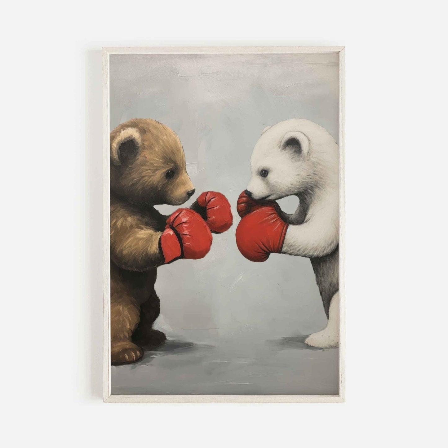 Transform your child's room into a world of adventure with our Vintage Boxing Bears Wall Art. These prints capture a thrilling match between a brown bear and a polar bear, evoking the charm of vintage sports illustrations.