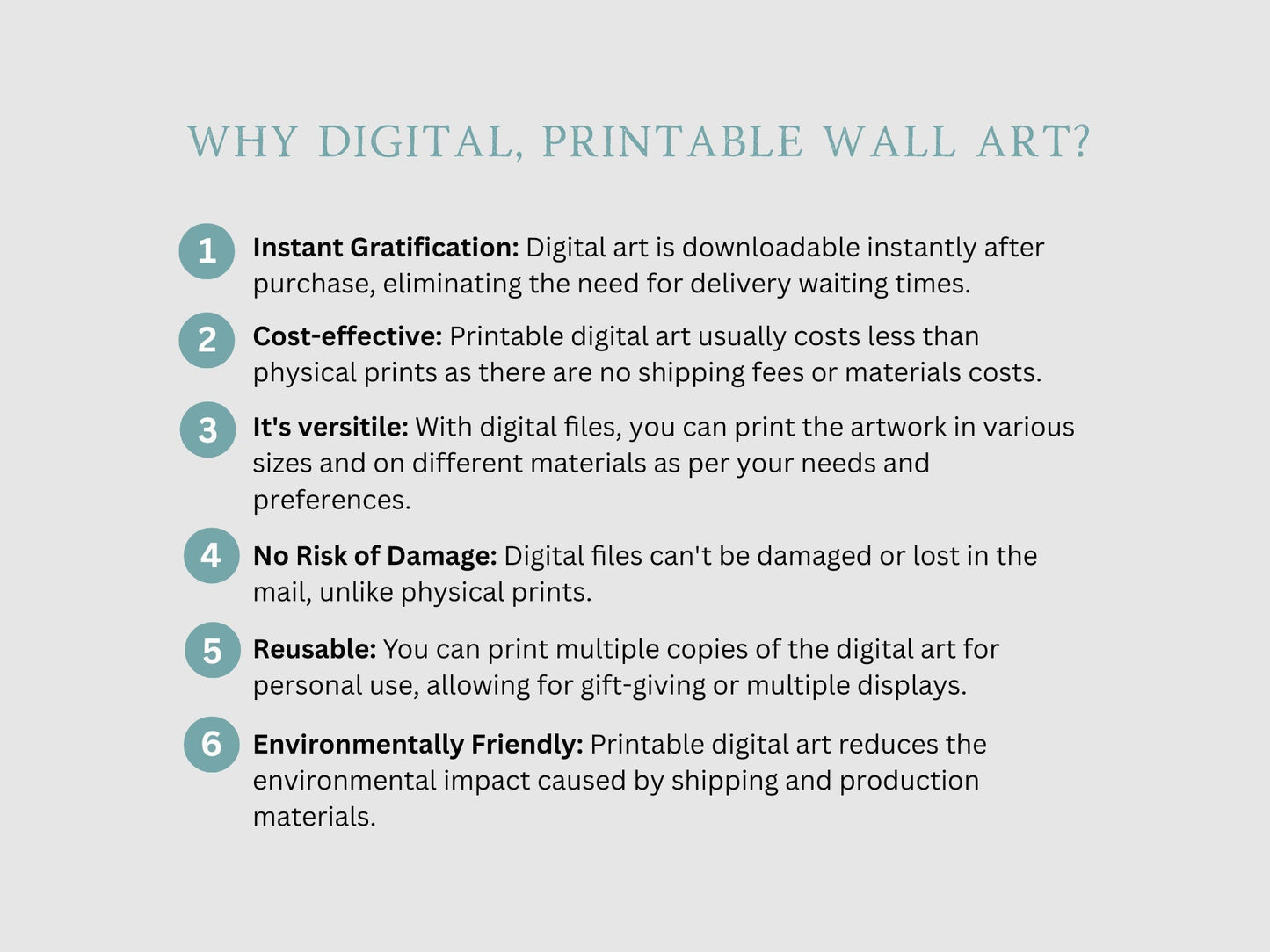 Choose between our two convenient options: a high-quality physical print that arrives at your door in various sizes, or a digital file set that lets you print up to 25 sizes at home or your local print shop. Enjoy the convenience and premium quality of our physical prints, or save money and customize your experience with our digital downloads. Transform your child’s room today!