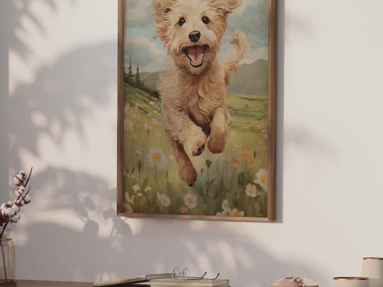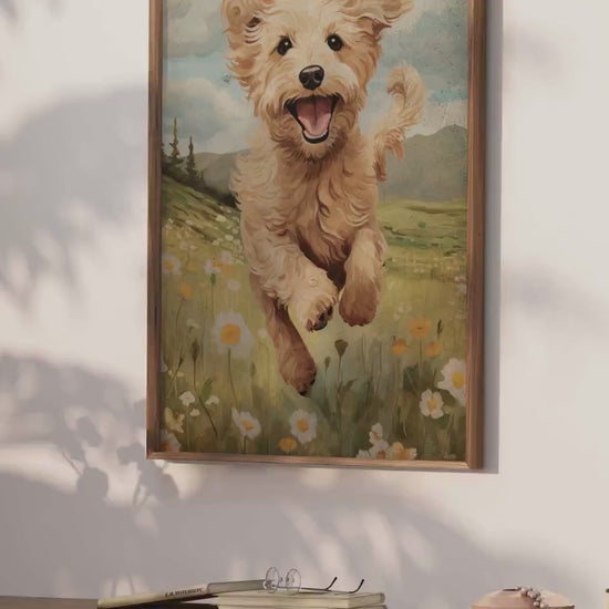 Unveil the joy of Goldendoodle love with this exquisite Goldendoodle Wall Art, capturing timeless elegance and canine delight.