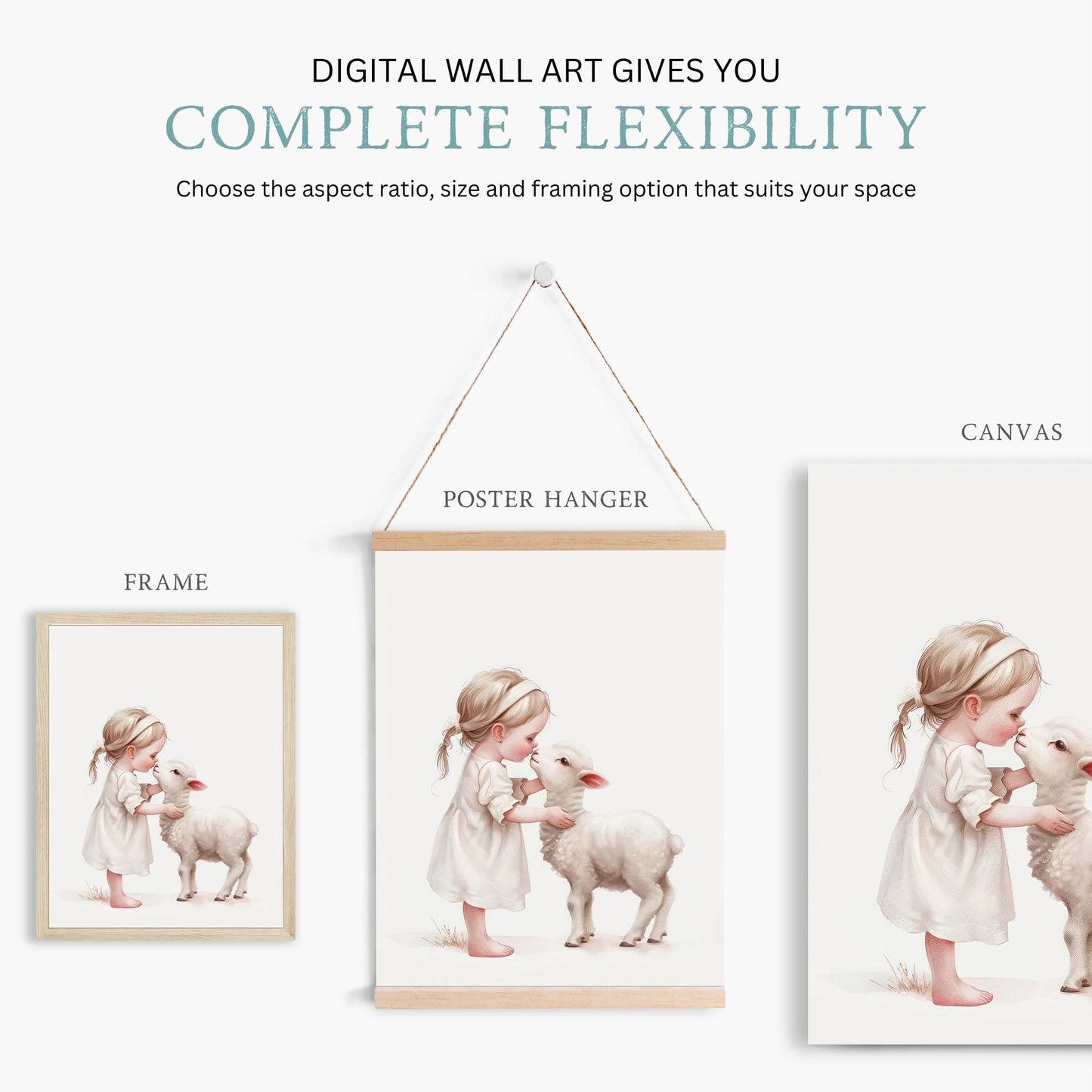 Transform your child's room with our enchanting Adorable Girl and Lamb Print. This heartwarming vintage artwork beautifully captures the innocence of childhood—a little girl sweetly kissing her beloved lamb. Perfect for creating a nurturing atmosphere, this piece will evoke warmth and compassion in any nursery, making it an ideal choice for parents seeking to inspire love and imagination.