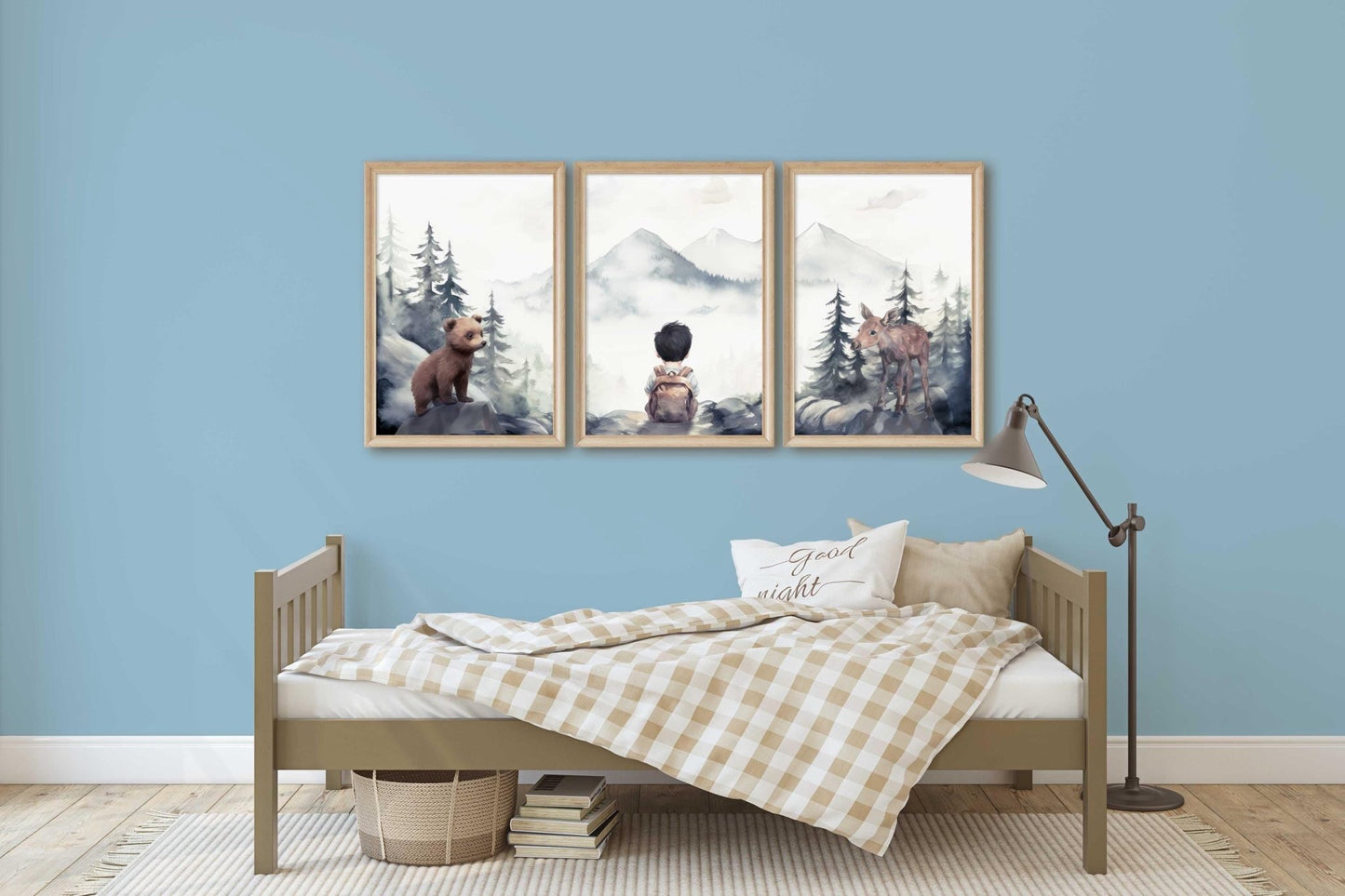 Moose & Bear Wall Art – Woodland Boys Room Print • Set of 3