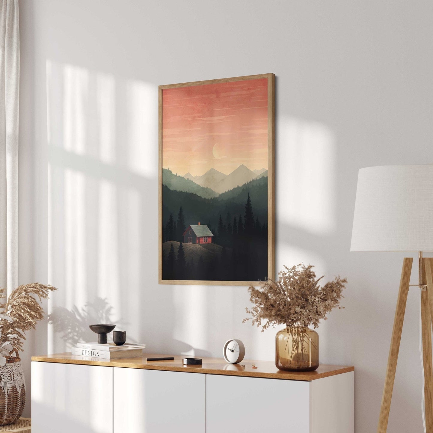 Mountain Cabin Print – Nature Nursery Wall Decor