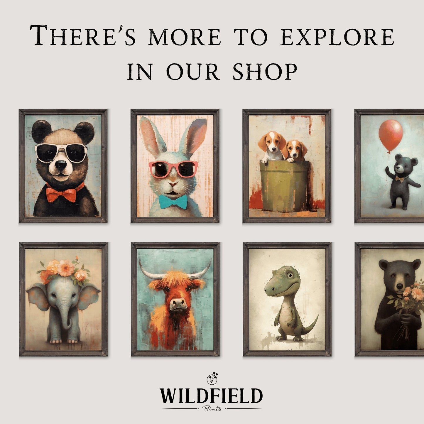 With a muted vintage aesthetic, this art piece features a soothing teal and vibrant palette against a white background, ideal for a nursery or child's room. The rustic charm of distressed frame edges adds warmth and character.