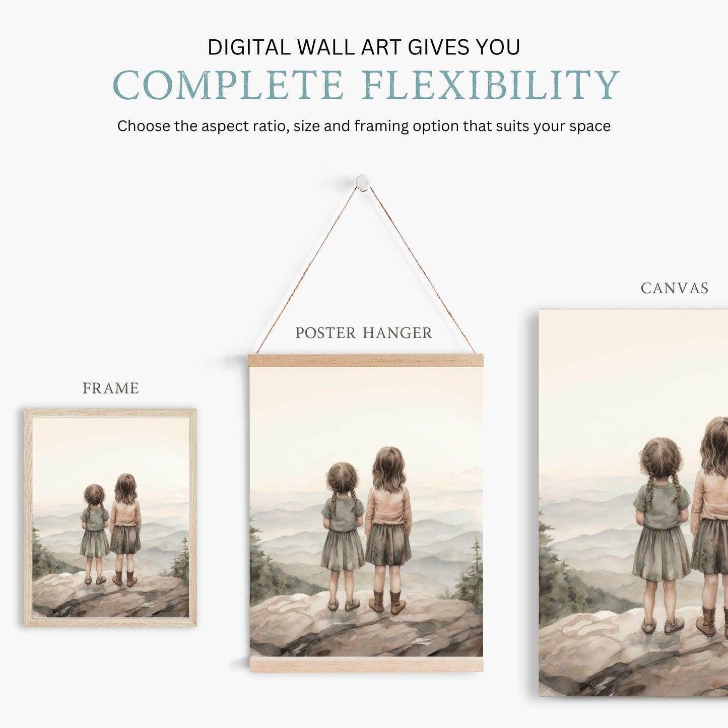 Two Little Girls Wall Art – Sisterhood Nursery Decor